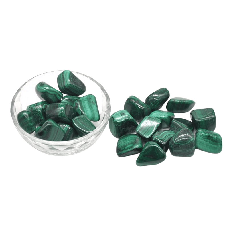 Pierre extrêmement populaire mais aussi extrêmement belle, la malachite se caractérise par sa belle couleur verte et ses nombreuses petites bandes concentriques noires. Son appellation est inspirée du grec ancien "malachos" qui signifie "mollesse".